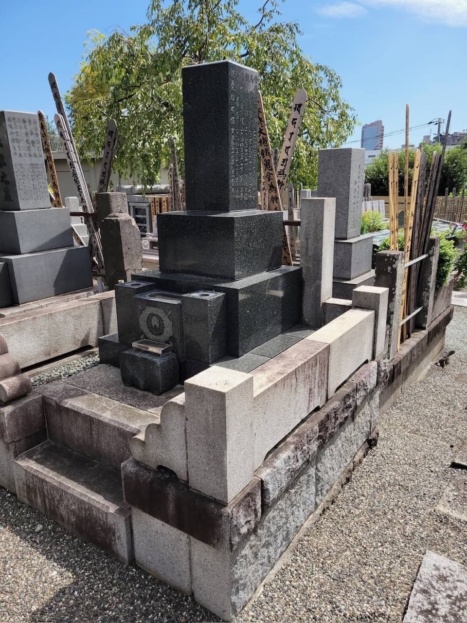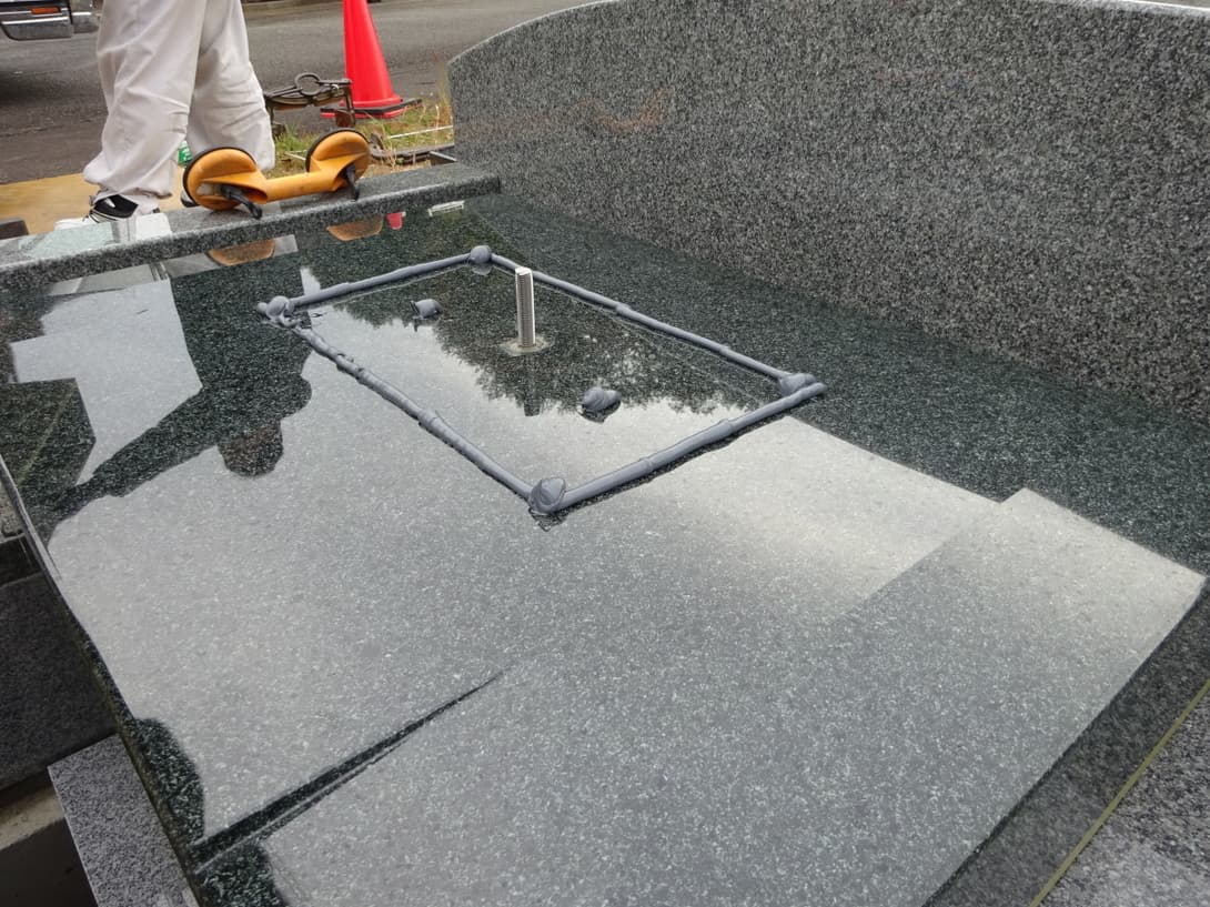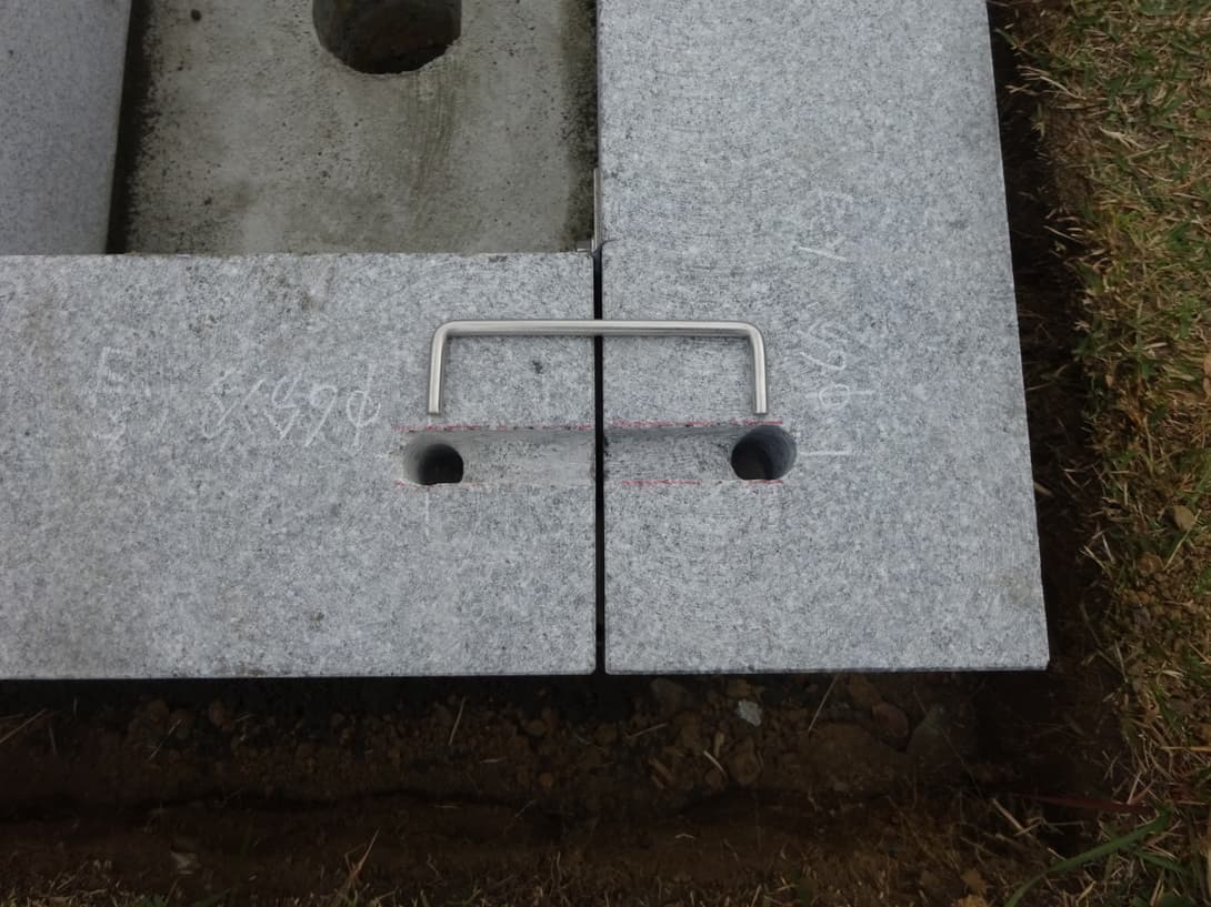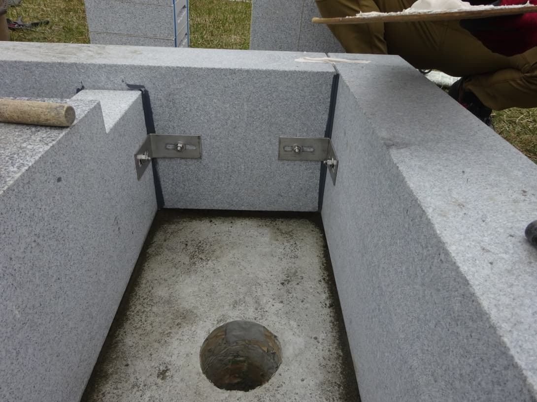 見えなくなる部分も全て墓石用接着剤・L型金具・耐震バーで固定し、風化によるズレを防ぎます。